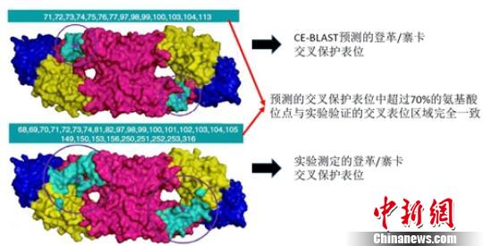 中国学者研发的方法计算出寨卡与登革热病毒存在高度相似的抗体表位,现有的登革热疫苗有潜在交叉预防寨卡病毒的作用 课题组供图