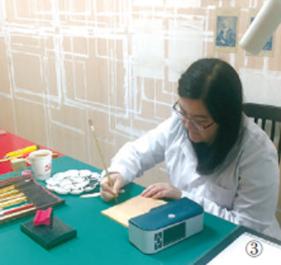 鲜为人知的是,为了保护文物,如今展馆内陈列的《共产党宣言》中文全译本,是与原件毫厘不差的仿制件。而承担仿制这一重要任务的,是一位“80后”姑娘——中共一大会址纪念馆保管部的赵嫣一(图③,本报记者曹玲娟摄)。