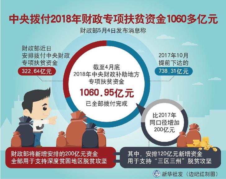 中央拨付2018年财政专项扶贫资金1060多亿元;