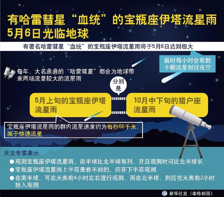 有哈雷彗星“血统”的宝瓶座伊塔流星雨6日光临地球