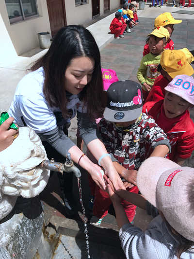 不久后,作为这家基金会的志愿者,她加入善缘2017关爱儿童行动,来到堆龙德庆的郎巴村、桑苍村幼儿园和马乡中心小学调研回访教学活动开展情况。在那里,陈飞见到了郎巴村幼儿园的小班花、5岁的旦增色小朋友,她既漂亮又聪明,拉着陈飞去参观她们的教室,并指着小书包和水杯上自己的照片让她看。“原来她和我的女儿一样,也是个粉红控”。