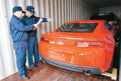 1月17日,河北省首批进口汽车整车到达唐山港京唐港区。图为唐山海关的工作人员在唐山港京唐港区核对进口车辆的信息。