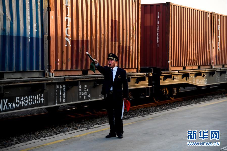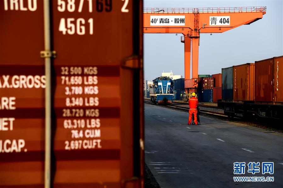 5月7日,在“中铁联集青岛中心站”,值班站长指令“青岛号”中亚国际班列开行。 新华社记者 郭绪雷 摄