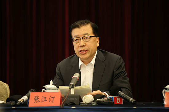 山东省委常委、青岛市委书记张江汀介绍上海合作组织青岛峰会筹备情况。(人民网记者李彤 摄)
