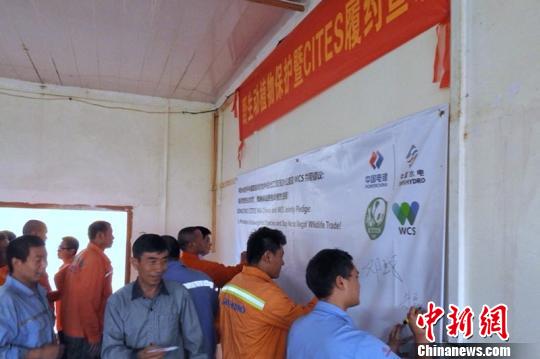 中国水电建设集团国际工程有限公司员工在抵制非法野生动植物贸易的倡议上签字 杜晓通 摄
