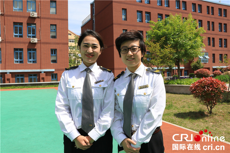 来自交运集团青岛长途汽车总站迎门班的人王震(左)(龚晨摄)