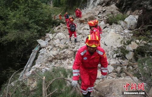资料图:2017年8月12日,中国国际救援队再次深入九寨沟“8.8”地震震中。中新社发 王路宽 摄