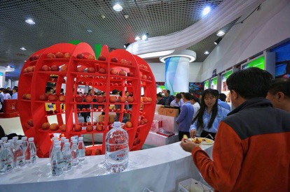 延安展览厅内展示的陕西苹果。(央视网 王莉莉 摄)