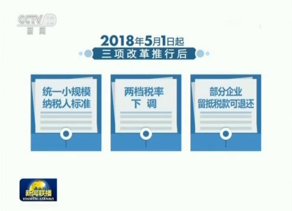 按照新政策,今年5月1日起,统一小规模纳税人标准、两档税率下调、部分企业留抵税款可退还等三项改革推行后,预计全年可减轻市场主体税负超过4000亿元。