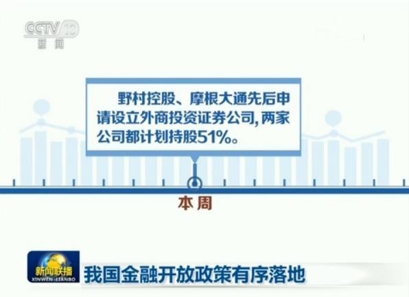 央视网消息(新闻联播):对外开放是我国长期坚持的基本国策,积极稳妥推动金融业对外开放是全国金融工作会议的明确要求。近期,从银行到证券到保险,一项项金融领域的开放政策纷纷落地。