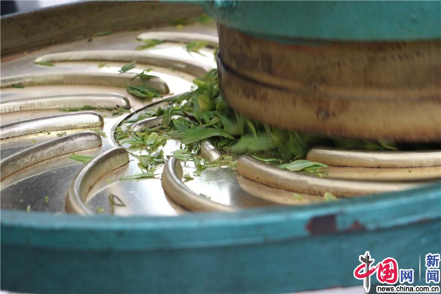 茶叶采摘完毕后进入制茶流程。图为机器揉捻。中国网记者 吴佳潼 摄