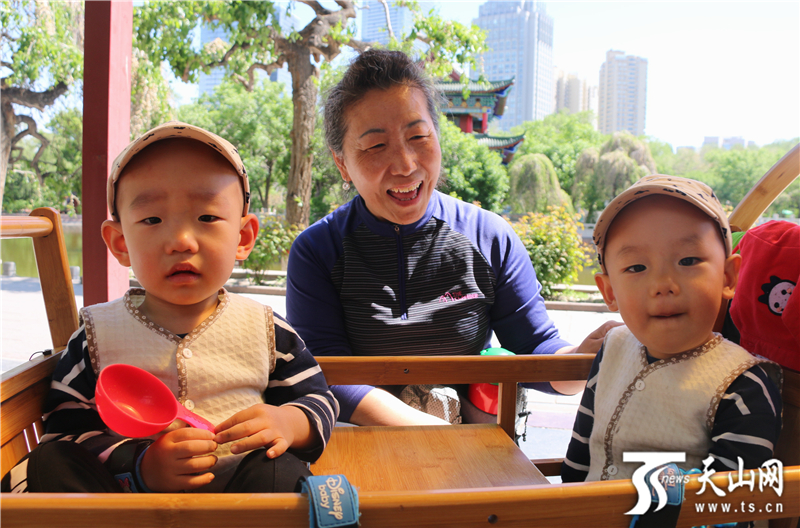 59岁张宝丽带着一对2岁半双胞胎孙子在公园遛弯时,总能收获他人艳羡的目光。
