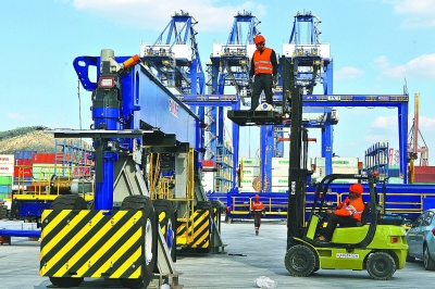图为中远海运集团希腊比雷埃夫斯港集装箱码头一角。位于地中海之滨的比雷埃夫斯港(简称比港)是希腊最大的港口,也是“21世纪海上丝绸之路”建设中的一颗明珠。新华社发