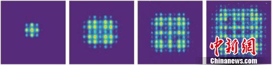单光子的二维量子行走演化结果,从左至右:量子行走演化时间逐渐增大。 上海交大供图。