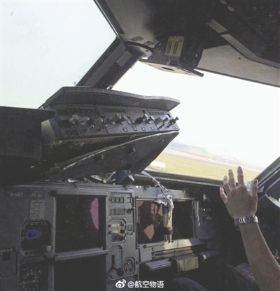 初步掌握的是飞机的前右侧风挡在空中脱落,飞行控制面板右侧的三分之一在空中也脱落了