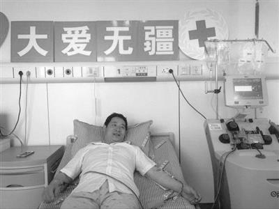 暗红的血液从输血管流进血细胞分离机里,机器内的马达高速转动,血液中的造血干细胞被迅速分离后,血液再回流体内……这是采集造血干细胞的场景,没经历过的人难以想象,经历过的人毕生难忘。“想到自己即将挽救别人一条命,这种感觉很幸福。而且我身体没有任何不良反应,这就像挂水一样,请大家不用为我担心。”记者采访王永时,乐观向上的他这样对记者说。“献血对身体没有影响,捐献造血干细胞也不会有影响。”原来,王永多年来一直进行无偿献血。在2011年5月献血时,他加入了中国造血干细胞捐献者资料库,成为造血干细胞捐献的志愿者。