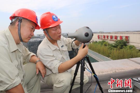 工作人员调试5G+VR全景720度摄像头(王万隆 摄)
