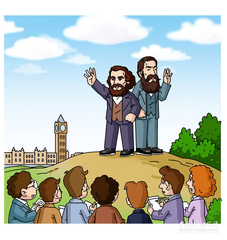 德国社会民主党的领导人李卜克内西、倍倍儿等人把马克思和恩格斯称为“伦敦二老”,非常地崇拜。苏凝/画
