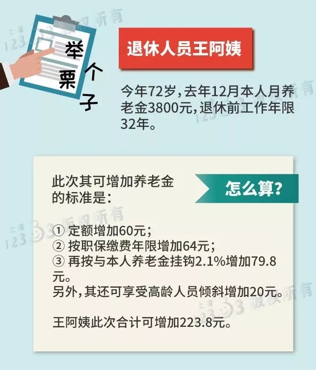 具体办法为:一是每人定额增加60元;二是按本人职保缴费年限(含视同缴费年限)每满1年增加2元,不足30元的按30元计算;三是以本人2017年12月的基本养老金为基数增加2.1%。