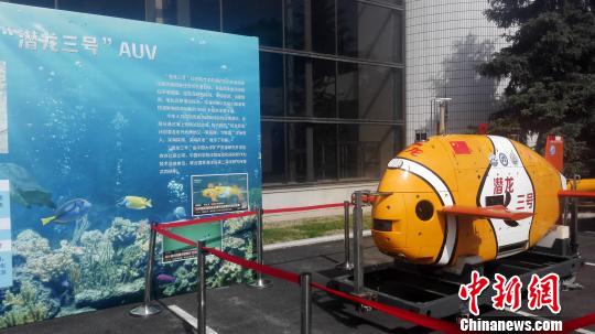 5月19日,中国“潜龙三号”自主水下机器人首次公开展出。 朱明宇 摄