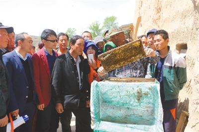 来到宁夏回族自治区固原市彭阳县孟塬乡小石沟村一户农家大院的时候,正赶上村党支部副书记陈泽恩为乡邻传授养蜂技术,互动环节,大家叽叽喳喳,好不热闹。“泽恩娃是大学生,有闯劲,他回乡带大家养殖中华蜂,土蜂蜜品牌名声响得很。我老伴是二度重残疾,以前靠吃低保过日子,现在养了15箱蜂,纯收入有一万多元呢。” 60多岁的王志孝露出憨憨的笑容。在陈泽恩的带动下,村里122户贫困户养蜂1144箱,人均增收2000元以上。小石沟,这个不起眼的小山村,已成为远近闻名的“甜蜜谷”。