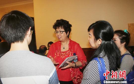 图为印尼智民学院院长陈玉兰向学生介绍“留学中国”的细节。 林永传 摄