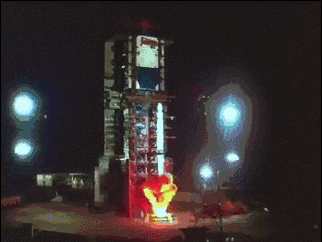 △“鹊桥”号中继星搭乘长征四号丙运载火箭升空瞬间
