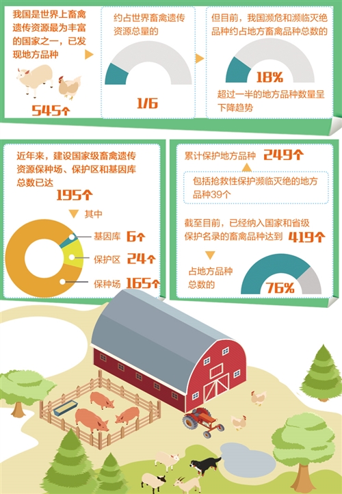 不过,我国地方畜禽品种资源相当部分由农户散养。随着新型城镇化和新农村建设加快,农村散养户大量退出,地方畜禽品种的生存空间变小。目前,我国濒危和濒临灭绝品种约占地方畜禽品种总数的18%,超过一半的地方品种数量呈下降趋势,资源的安全状况日趋严峻。如何保护和开发宝贵的畜禽种质资源,摆在了人们面前。