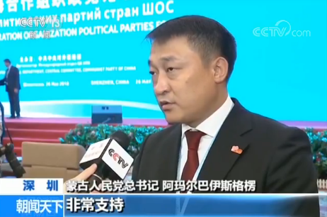 蒙古人民党总书记 阿玛尔巴伊斯格楞:蒙方十分认同中方提出的“人类命运共同体”理念,非常支持。在上合地区“一带一路”倡议正在推进,我们希望利用上合政党论坛这个平台,推进更多“一带一路”倡议框架下的合作。