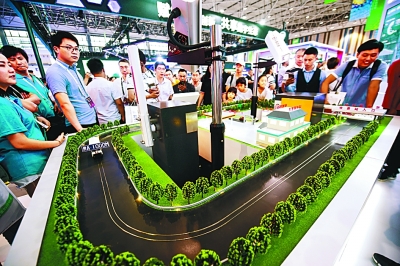 5月26日,参观者在数博会上参观高速不停车移动支付系统。新华社记者 陶亮摄