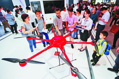 5月26日,市民在数博会现场参观大型无人机。新华社记者 刘续摄