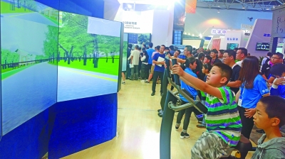 数博会现场,观众在体验沉浸式VR自行车。本报记者 李慧摄/光明图片