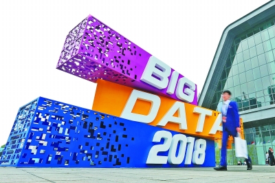 数博会会场外的大数据标识。新华社发
