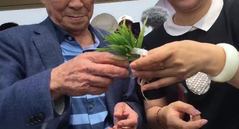 袁老先向参与“拓荒人计划”的各位嘉宾传递秧苗