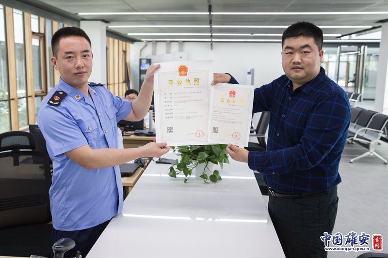 崔先生在雄安新区政务服务中心拿到了营业执照。记者王永康 摄