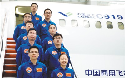 在C919首飞后的讲评会上,首飞机组中担任观察员的中国商飞公司总飞行师钱进特别感谢了“一群没日没夜工作的年轻人”,他们正是中国商飞C919大型客机首飞机组青年团队。