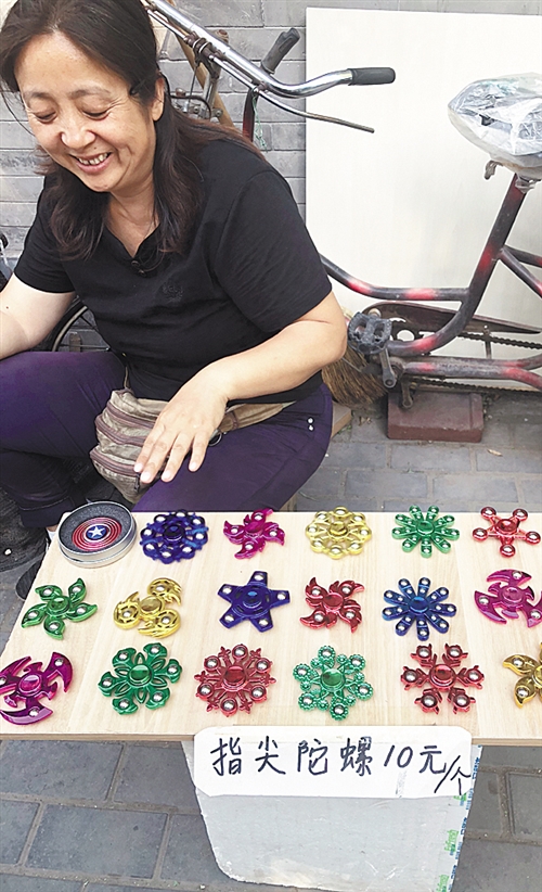 地摊上售卖的指尖陀螺存在危险尖点利边。本报记者 佘 颖摄