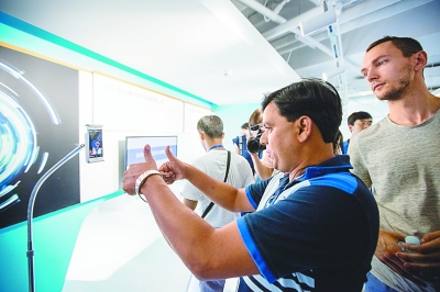 5月29日,上海合作组织成员国媒体代表在北京参观中关村前沿技术创新中心。北京市委宣传部供图