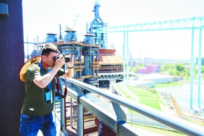 5月30日,上海合作组织成员国媒体代表参访位于首钢北京园区的2022年北京冬奥会组委会办公区——西十冬奥广场。昔日的重工业厂房如今融合了文化、体育等新兴元素,媒体代表们对此兴趣十足。北京市委宣传部供图