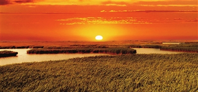 图 在夕阳的辉映下,七里海湿地的景色美不胜收。