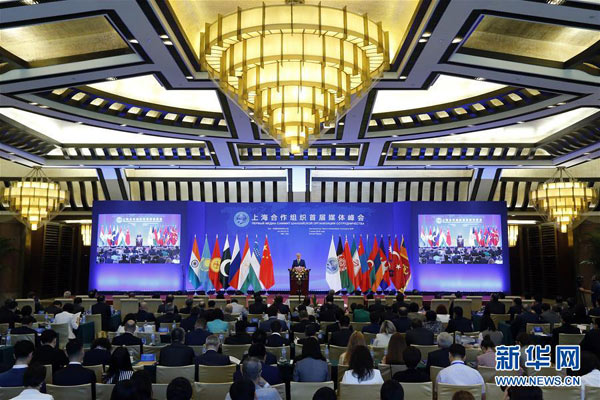 6月1日,由国务院新闻办公室主办的上海合作组织首届媒体峰会在北京开幕。这是上合组织秘书长阿利莫夫在开幕式上致辞。 新华社记者 沈伯韩摄