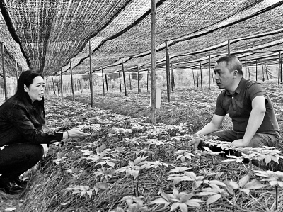 科研人员在文山苗乡三七种植基地查看三七种苗。光明日报记者 张勇摄/光明图片