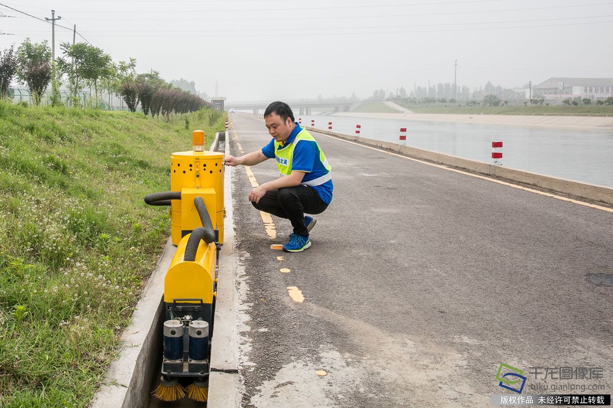 南水北调工程是世界上规模最大的调水工程。图为南水北调河北分局沙河管理处工程人员纪晓辉正在操作使用自行研究设计的排水沟清扫设备(5月16日摄 图片来源:tuku.qianlong.com)。千龙网记者 宋鹏飞摄