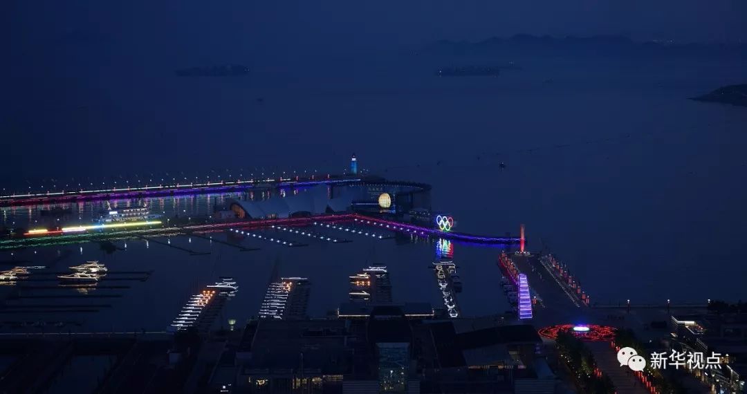 这是青岛奥帆中心夜景(5月31日摄)。新华社记者王建华 摄
