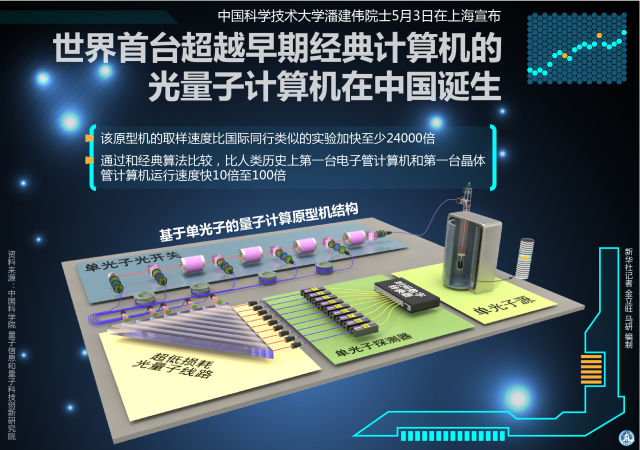 2017年5月3日,世界首台超越早期经典计算机的光量子计算机在中国诞生 (新华社记者 金立旺 马研 编制)