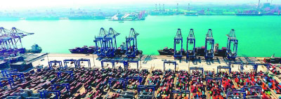 青岛港前湾自动化集装箱码头。新华社发