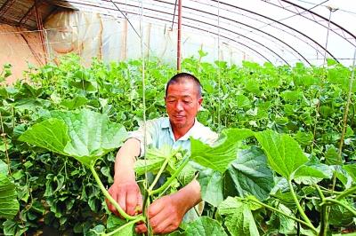 灵武市郝家桥镇兴旺村的一栋沙地大棚内,农民在打理农作物。新华社记者 隋先凯摄