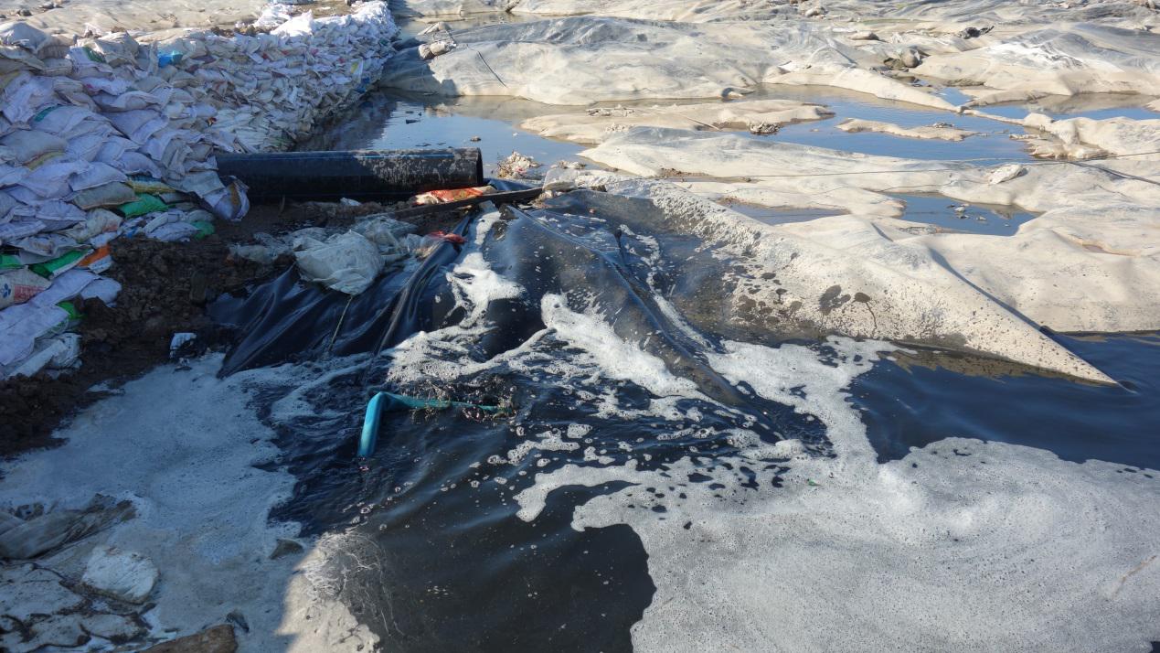 哈尔滨市香坊区向阳垃圾填埋场大量渗出滤液。(生态环境部供图)