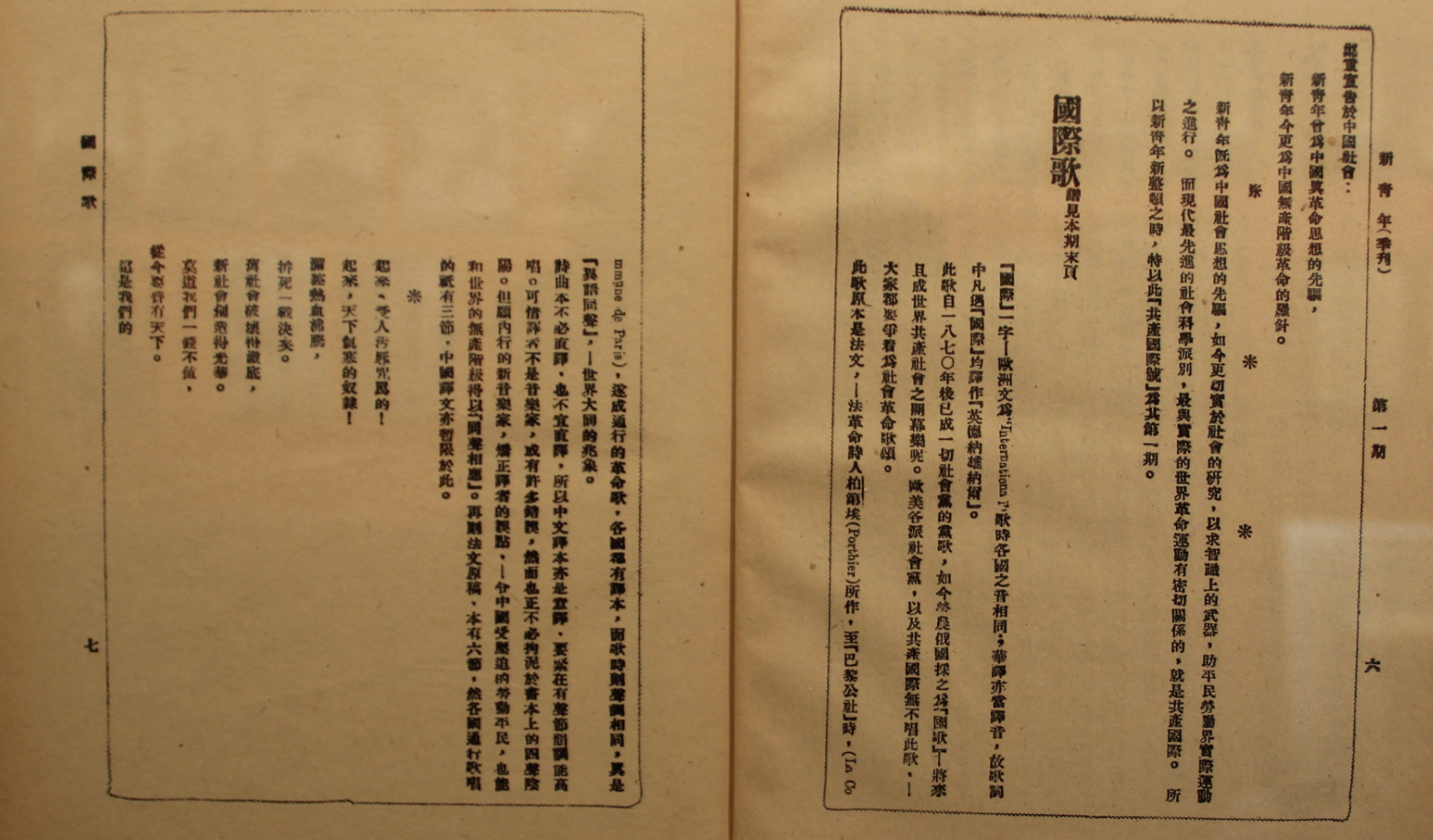 瞿秋白翻译的《国际歌》,发表在《新青年》第一期