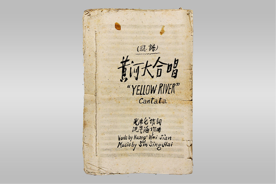 这份歌曲《黄河大合唱》的总谱,现藏于中国人民革命军事博物馆。1944年6月,国际著名记者、波兰人爱泼斯坦随中外记者团到访延安,从陕甘宁边区政府交际处得到这本总谱。后来,他把这首歌曲带到了美国,并举办了演唱会,《黄河大合唱》的高昂之音传遍海内外。